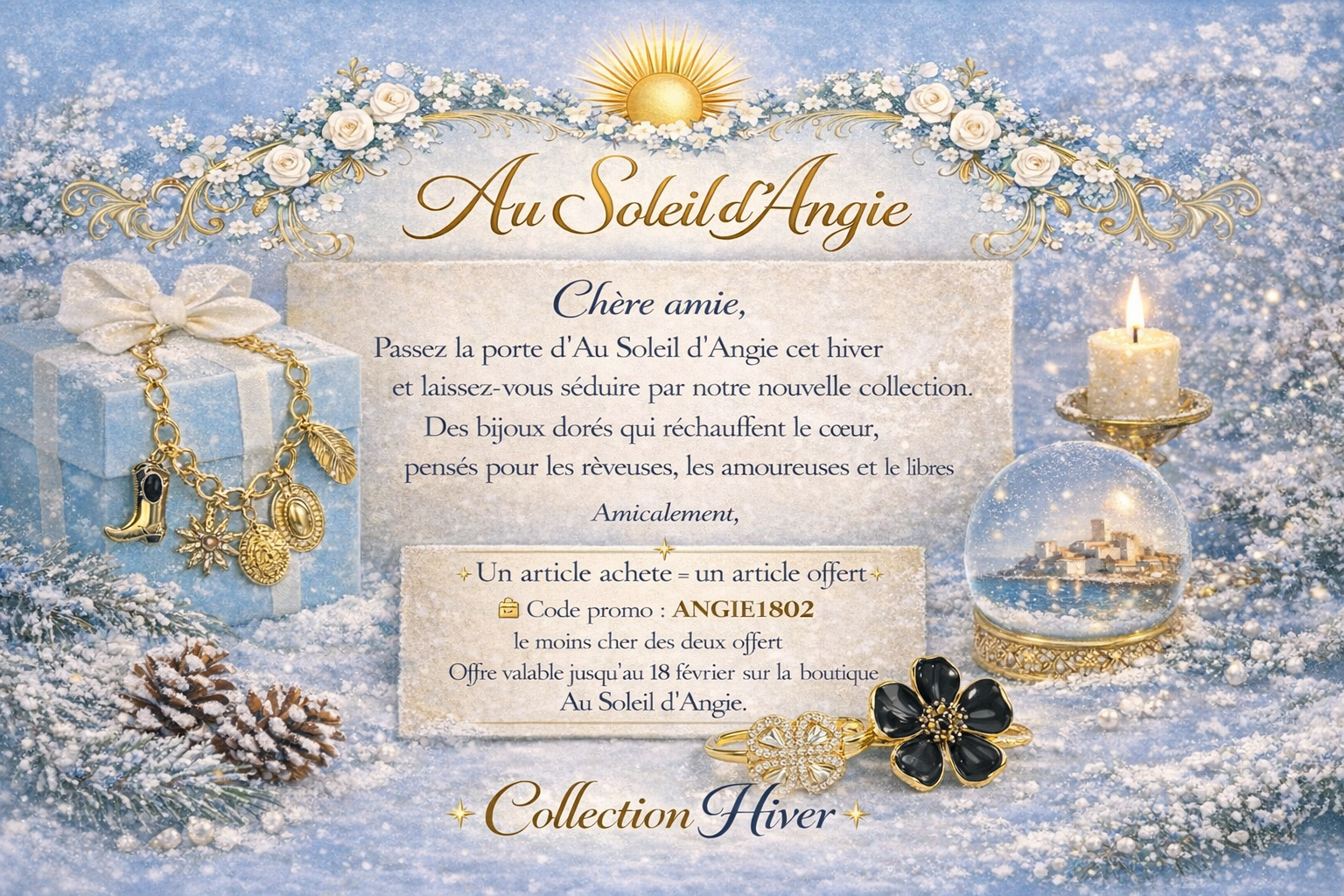 C’est ainsi qu’est née Au Soleil d’Angie, une boutique pensée comme une parenthèse douce et lumineuse, où chaque bijou en acier inoxydable est choisi pour représenter la résilience, la féminité et l’espoir.