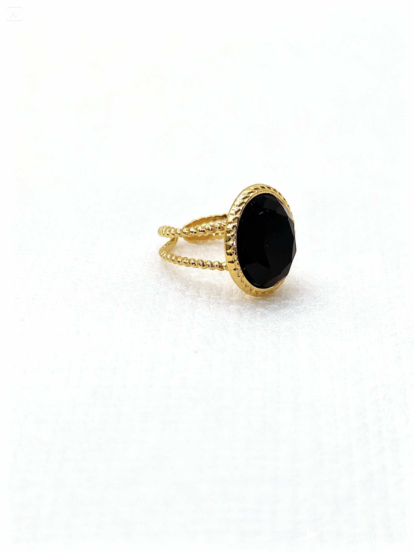 Cette pièce est une véritable hymne à l'élégance intemporelle. Son cabochon d'un noir profond et brillant, serti d'un anneau doré finement ciselé, attire tous les regard et ne laisse personne indifférent. Conçue en acier inoxydable pour une résistance et une longévité exceptionnelles, cette bague est une alliance parfaite entre le design tendance et modernité.