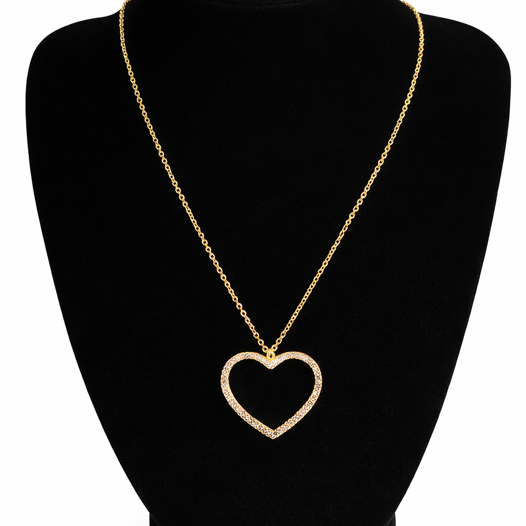 Le collier Jennyfer séduit par sa simplicité raffinée et son éclat délicat. Son cœur ajouré, finement serti de pierres scintillantes, symbolise un amour sincère, lumineux et intemporel.