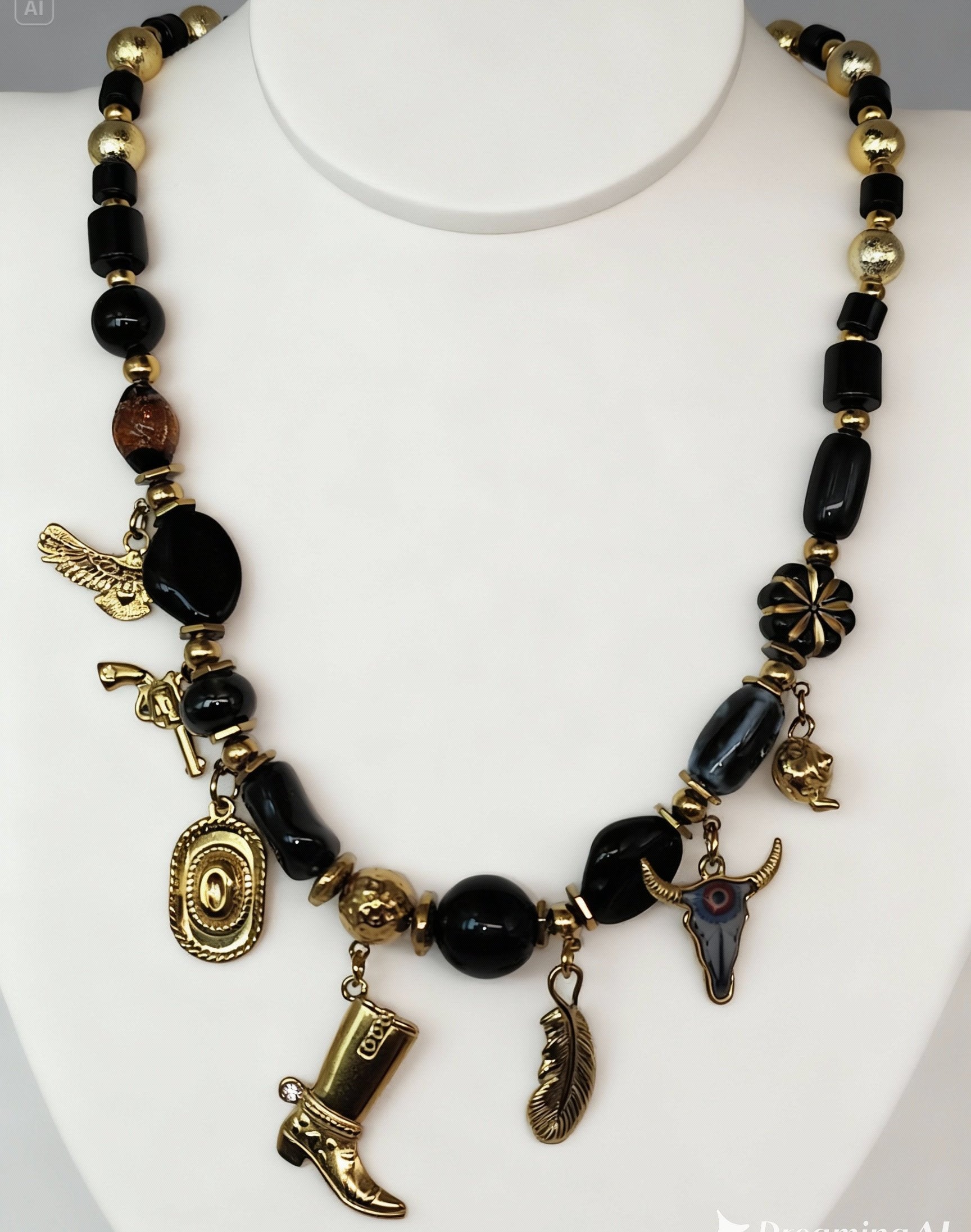 Plongez dans l'univers du Far West avec ce somptueux collier signé Mile Mila. Une pièce au charme audacieux et raffiné.